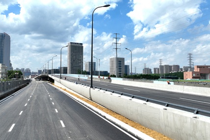 6月1日上午8時(shí),由安徽省交通建設(shè)股份有限公司承建的宿松路2標(biāo)段花園大道跨線橋正式建成通車。