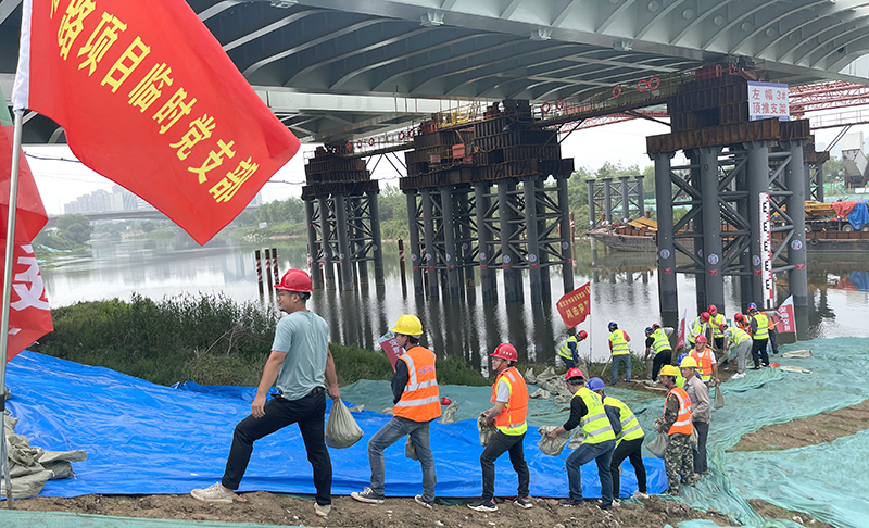 本次演練背景為連續(xù)強降雨天氣,南淝河水位持續(xù)上漲即將突破警戒線,隨時會洪水破堤淹沒施工便道圍堰堤壩、危害周圍居民財產(chǎn)及生命安全……險情告急!