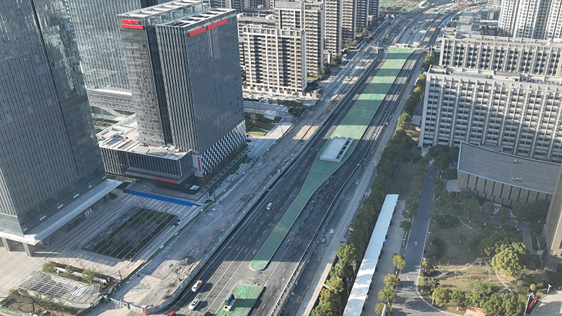宿松路下穿地道全長1251.3m,其中北側(cè)敞口段136.3m,暗埋段長975m;南側(cè)敞口段長140m,共42個節(jié)段。與繁華大道十字相交段的雙層下穿疊合段自3月14日開挖至今,歷時283天,實現(xiàn)宿松路下穿地道結(jié)構(gòu)貫通,比計劃工期提前160天!