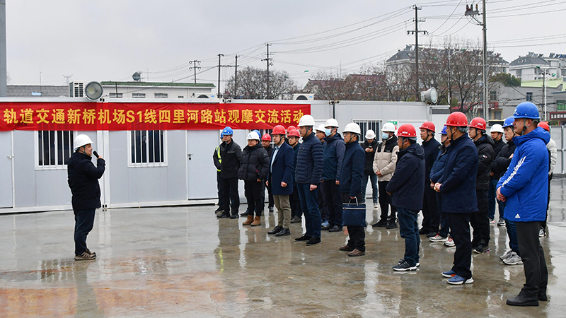 下午15:00,參會(huì)人員40余人到達(dá)觀摩現(xiàn)場(chǎng),軌道質(zhì)監(jiān)站總工陳曉明做活動(dòng)啟動(dòng)講話。參會(huì)人員現(xiàn)場(chǎng)參觀了四里河路站場(chǎng)地布置、揚(yáng)塵防治、安全文明施工管理等內(nèi)容,聽(tīng)取了項(xiàng)目經(jīng)理王飛相關(guān)經(jīng)驗(yàn)介紹,并進(jìn)行交流。