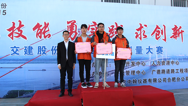 最后,交建股份副總裁吳小輝、技術(shù)開發(fā)中心總經(jīng)理宣菲分別為獲得全站儀組、水準(zhǔn)儀組團(tuán)體第一名頒發(fā)證書和獎金并表示祝賀。至此,交建股份第三屆施工測量技術(shù)培訓(xùn)暨施工測量大賽圓滿落幕。
