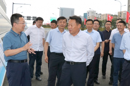 6 月29 日下午,安徽省委常委、合肥市委書記虞愛華一行調(diào)研由安徽交建承建的宿松路快速化改造 2 標(biāo)段項(xiàng)目建設(shè)。