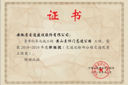 近日,從中國(guó)公路建設(shè)行業(yè)協(xié)會(huì)傳來(lái)喜訊,安徽省交通建設(shè)股份有限公司黃山至祁門(mén)高速、揚(yáng)州至績(jī)溪高速公路寧國(guó)至績(jī)溪段項(xiàng)目雙雙榮獲2018-2019年度李春獎(jiǎng)。