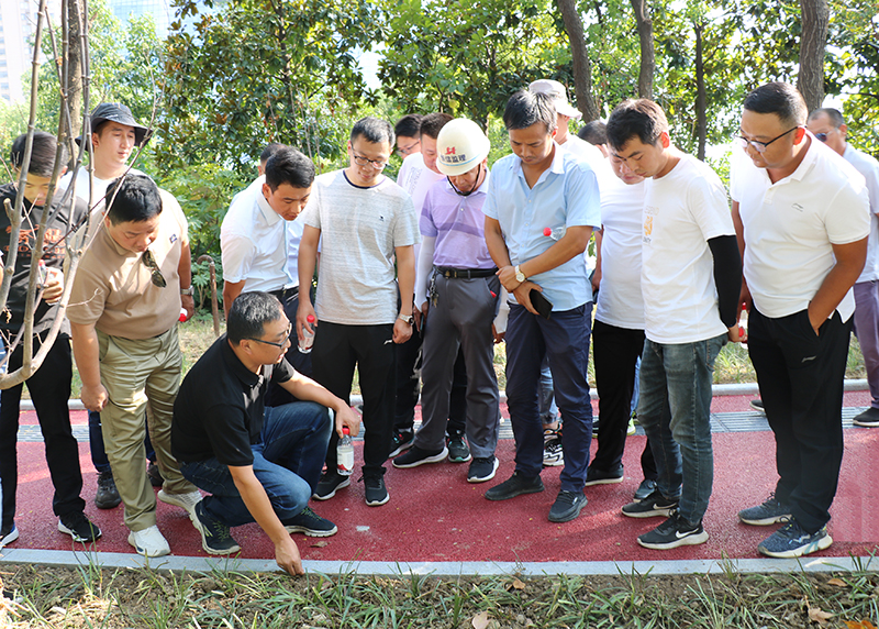 活動期間,安徽交建2019經(jīng)開慢行項目經(jīng)理吳金忠分享了施工管理的經(jīng)驗,針對慢行系統(tǒng)側石、透水混凝土、仿石材道板磚鋪裝、聚合物盲道以及瀝青混凝土面層施工工藝流程的控制,到邊到拐等細節(jié)處理方面與在場的專家進行了深入的交流和探討。